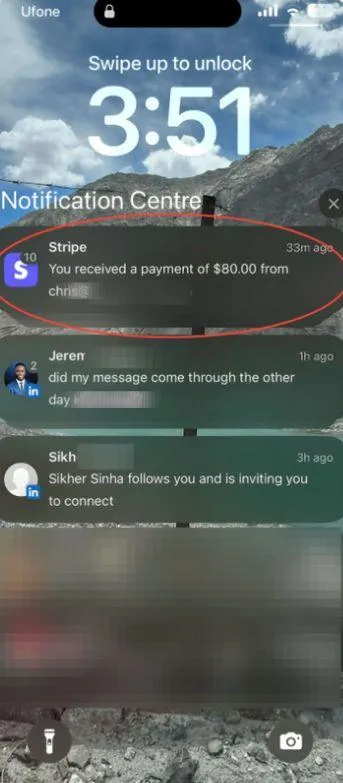 3:51 AM: Stripe pings stacked—$80, then $80, then $80.